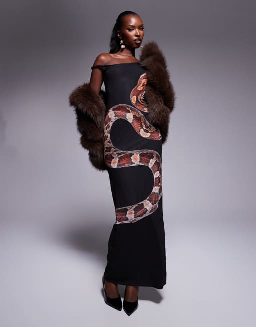 Robe longue imprime serpent a col benitier boohoo FR Very well made.