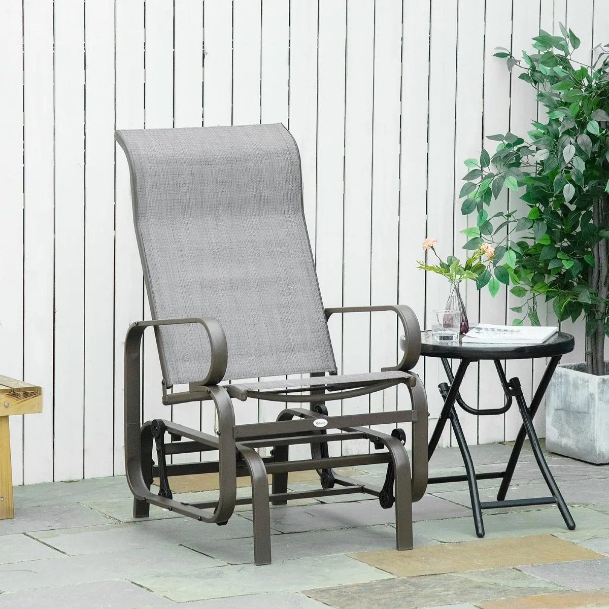 Outsunny Set of 2 Rocking Glider Chairs Set w Glass Top Table High Back 3pcs Patio Furniture Bistro Set Grey Very well made.