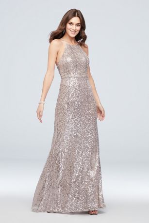 High Neck Allover Sequin Bridesmaid Dress David s Bridal Very well made.