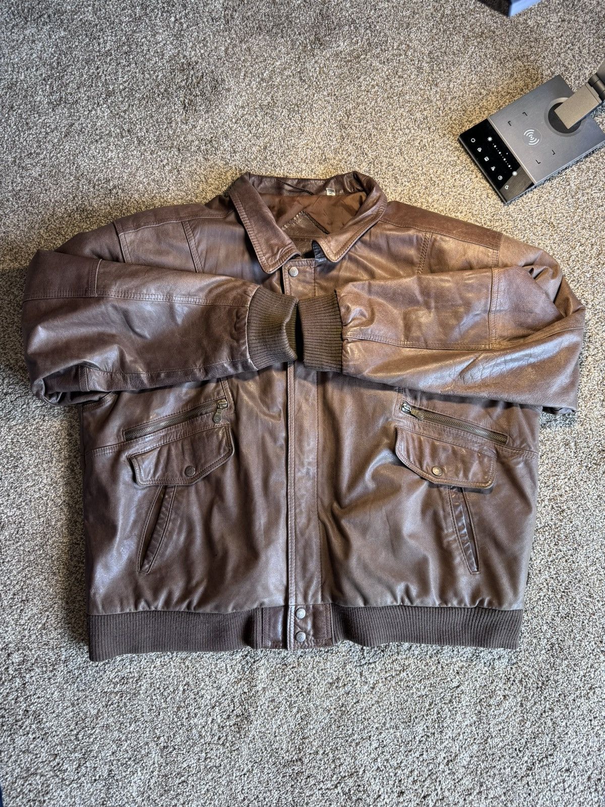 Roundtree Yorke Burnished PU Faux Leather Bomber Jacket S Very well made.